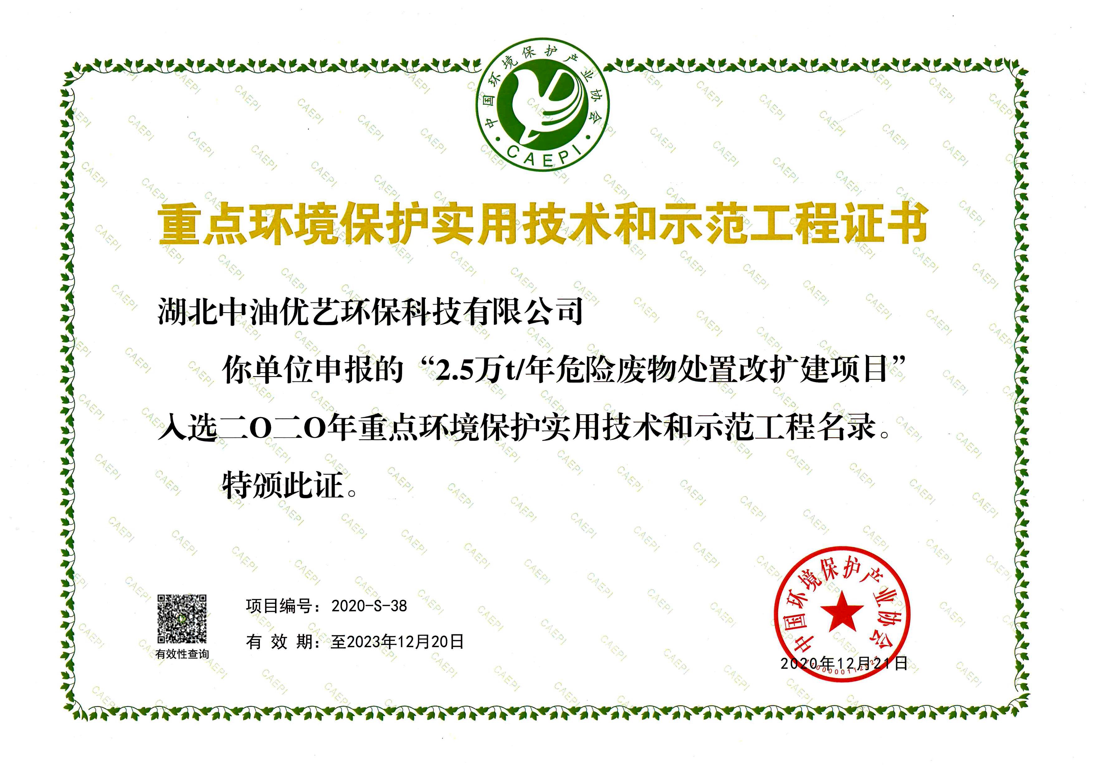 近日,中國環境保護產業協會頒發“2020年重點環境保護實用技術和示范工程”獎。公司旗下中油環?!?.5萬t/年危險廢物處置改擴建項目”成功入選并獲獎。該獎項旨在助力打好污染防控攻堅戰,加快先進適用環境保護技術的推廣應用,促進環保產業技術進步。