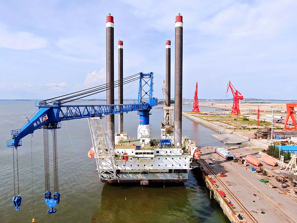 由子公司潤(rùn)邦重機(jī)為深圳聯(lián)合海洋新能源科技有限公司設(shè)計(jì)建造的GENMA 600噸全回轉(zhuǎn)海洋起重機(jī)近日完成交付。該海洋起重機(jī)安裝于“德盛287(現(xiàn)名騰東001)”風(fēng)電安裝平臺(tái),主要用于海上風(fēng)電塔筒、葉片和主機(jī)的安裝作業(yè)。
