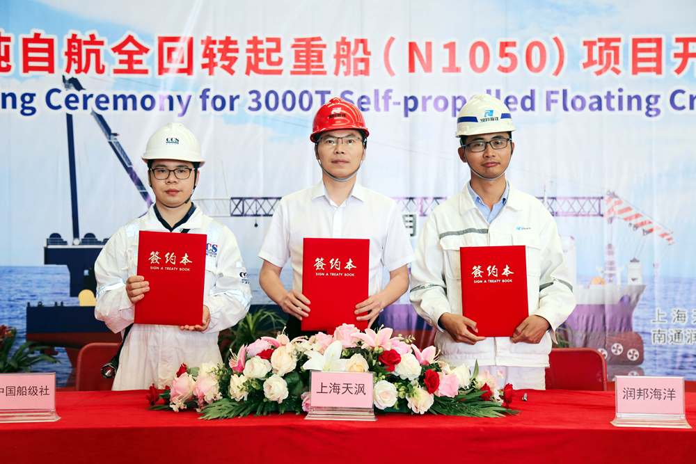 近日,由子公司潤邦海洋承接的“3000噸自航全回轉起重船項目”正式開工。船東代表、船級社及我公司領導、嘉賓等共同出席了開工儀式。這是繼4月28日16000噸多功能甲板駁船開工后,潤邦海洋開工建造的又一艘工程船舶。