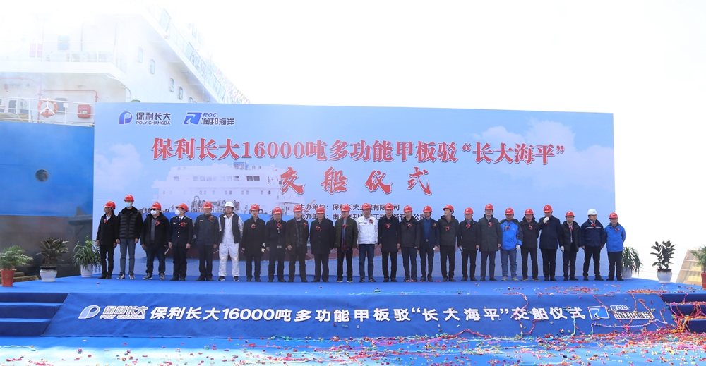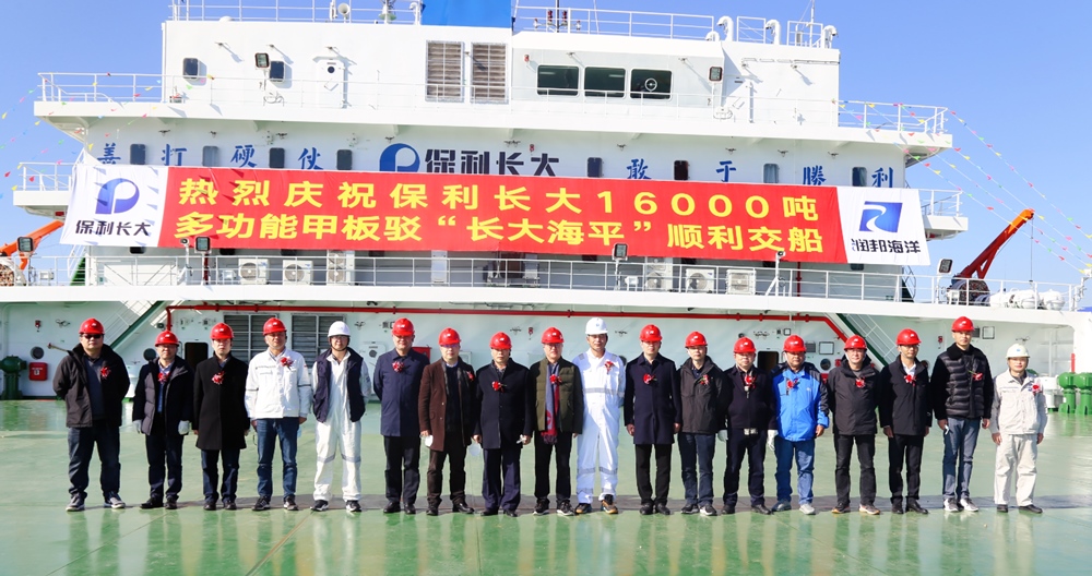 近日,子公司潤(rùn)邦海洋為保利長(zhǎng)大工程有限公司建造的16,000噸多功能甲板駁“長(zhǎng)大海平”在潤(rùn)邦海洋碼頭隆重舉行交船儀式。保利長(zhǎng)大工程有限公司副總經(jīng)理?xiàng)罱ㄎ南壬C(jī)材部副總經(jīng)理曹颋熠先生,港航公司黨總支書(shū)記李斌先生,啟東海工船舶工業(yè)園區(qū)領(lǐng)導(dǎo),中國(guó)船級(jí)社陳繼恩先生,潤(rùn)邦海洋執(zhí)行董事施曉越先生、潤(rùn)邦海洋總經(jīng)理邵夕吾先生等出席。