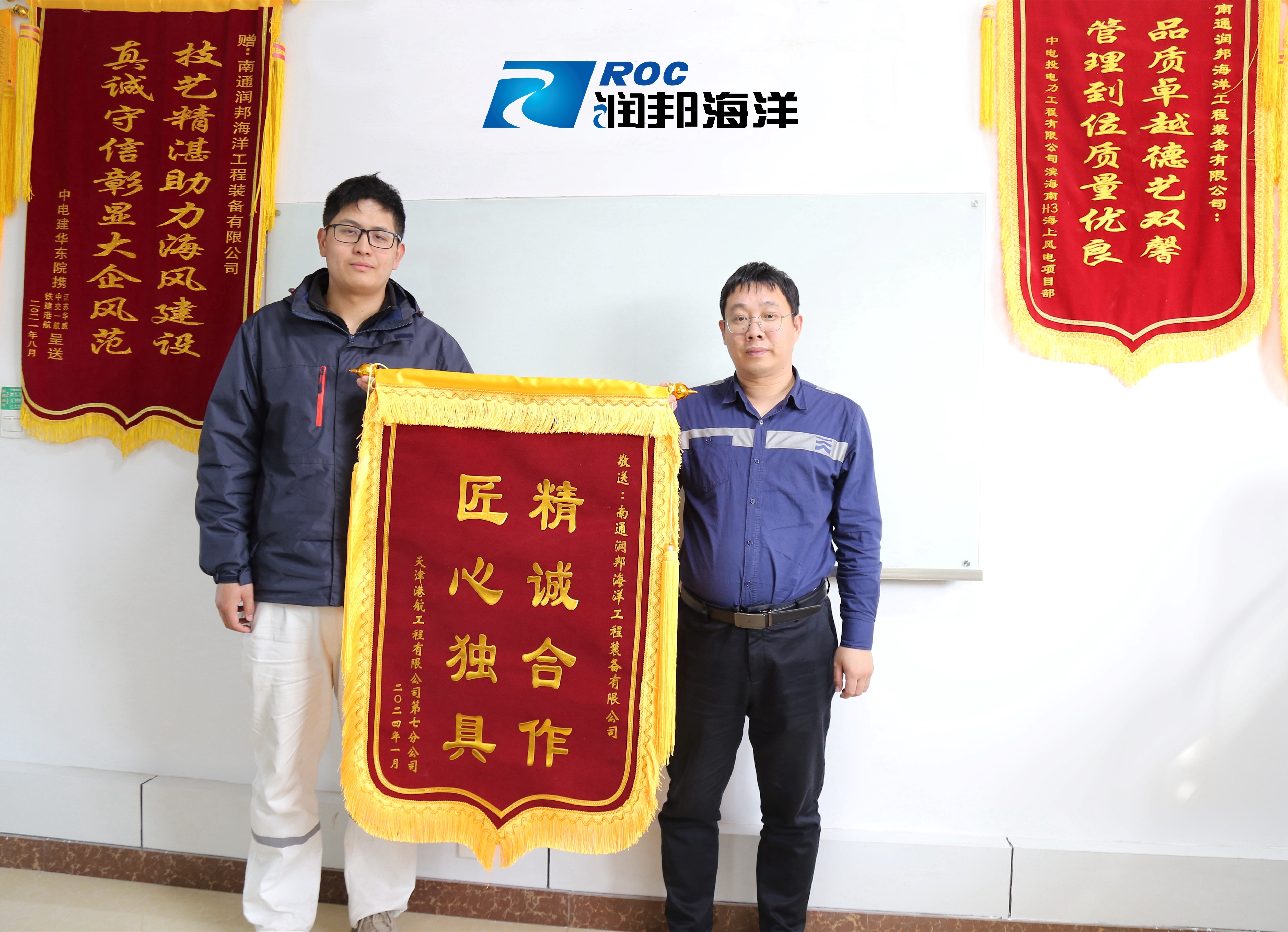 近期,子公司潤邦海洋收到客戶天津港航工程有限公司頒發(fā)的“精誠合作、匠心獨具”榮譽錦旗,這不僅是對我司在華能岱山1號海上風電項目專業(yè)表現(xiàn)及服務表示肯定,也是對我司全體員工極大的鼓舞和激勵。