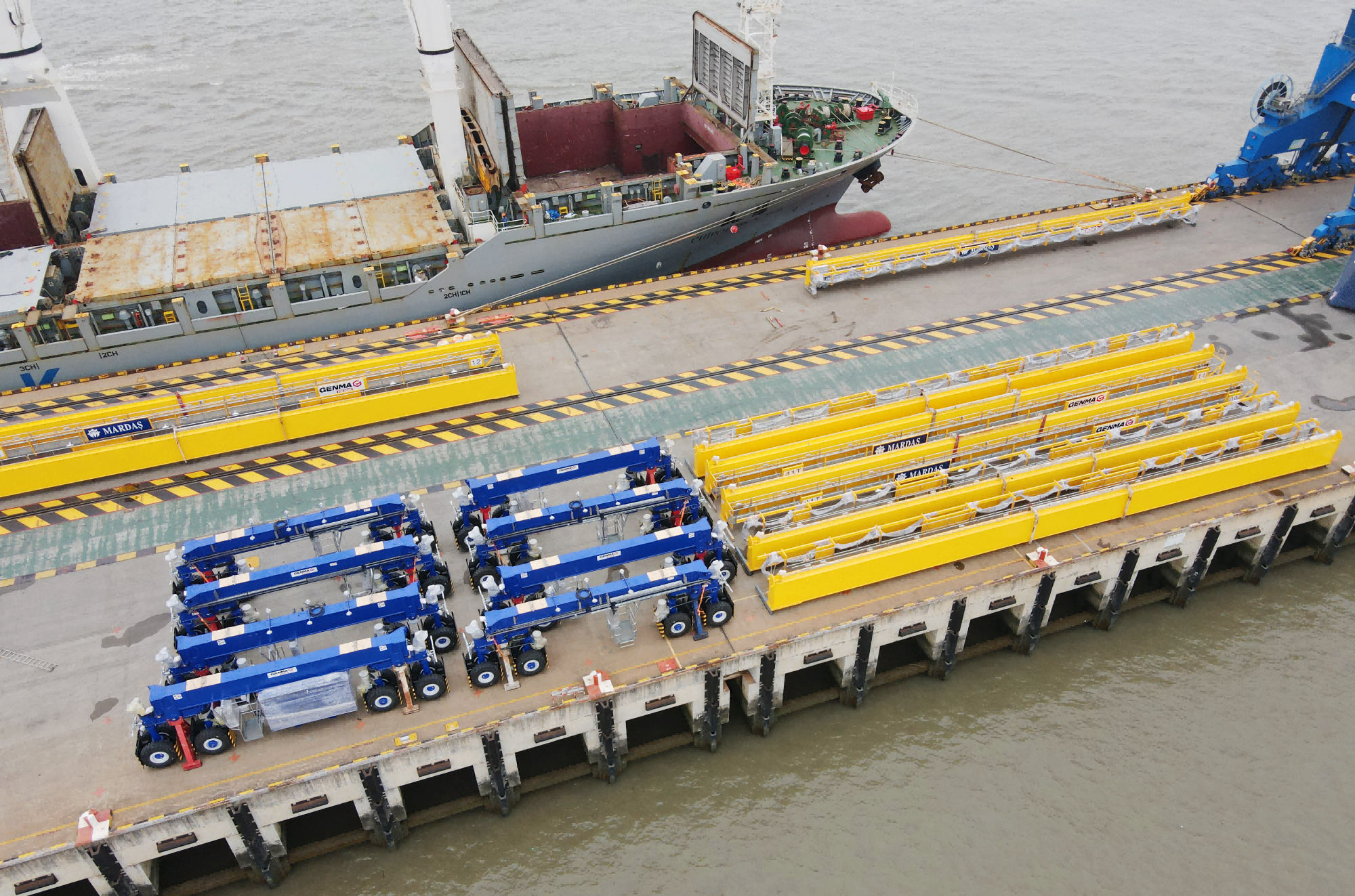 近日,土耳其Mardas Port項目4臺Genma-Kalmar輪胎吊成功發(fā)運,將于6月抵達客戶碼頭。為確保該項目的輪胎吊能夠安全、便利地通過卸貨港與作業(yè)場地之間的高架橋梁,本次運輸采取了散裝發(fā)運的形式,不僅能使起重機的運輸有更好的通過性,而且便于對各部裝件進行海運包裝,抵御長途海運造成的影響。