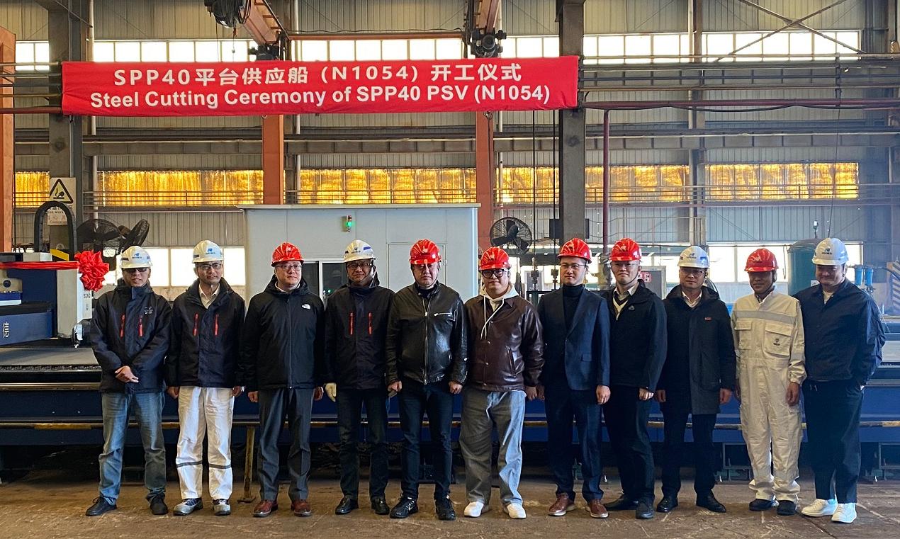近日,子公司潤邦海洋承接的SPP40平臺供應船又一艘船N1054順利舉行了開工儀式,國銀金租、思佰科、BV船級社、潤邦海洋等相關領導出席。
