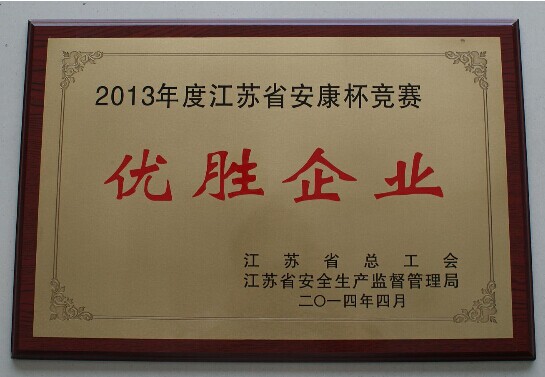 近日,江蘇省總工會表彰了2013年度全省“安康杯”競賽先進集體和個人,公司從全省25458家企事業單位中脫穎而出,榮獲江蘇省“安康本”競賽“優勝企業”稱號。
