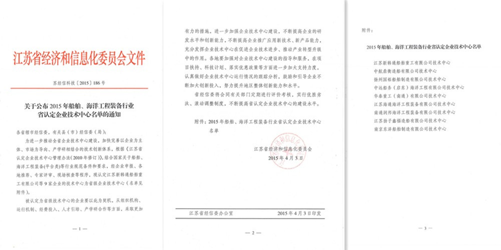 日前,子公司潤邦海洋企業技術中心被江蘇省經濟和信息化委員會認定為“2015年船舶、海洋工程裝備行業省認定企業技術中心”。