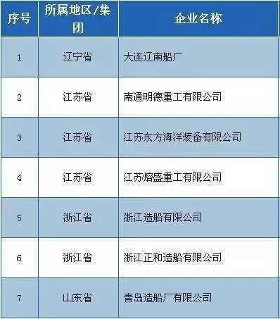 【附】符合《船舶行業規范條件》企業名單(全部70家)
