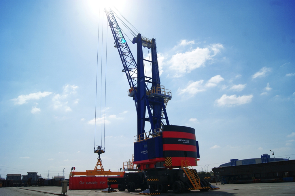 “GENMA” 移動(dòng)式港口起重機(jī)是潤邦重機(jī)的戰(zhàn)略產(chǎn)品,主要應(yīng)用于港口碼頭各類貨物的裝卸搬運(yùn)。該產(chǎn)品自誕生以來,先后斬獲了“江蘇省高新技術(shù)產(chǎn)品”、“江蘇省首臺(tái)(套)重大裝備產(chǎn)品”等榮譽(yù)。通過加快智能型多功能移動(dòng)式港口起重機(jī)產(chǎn)業(yè)化步伐,對提高我省乃至全國機(jī)械工業(yè)的綜合實(shí)力和水平具有積極的意義。