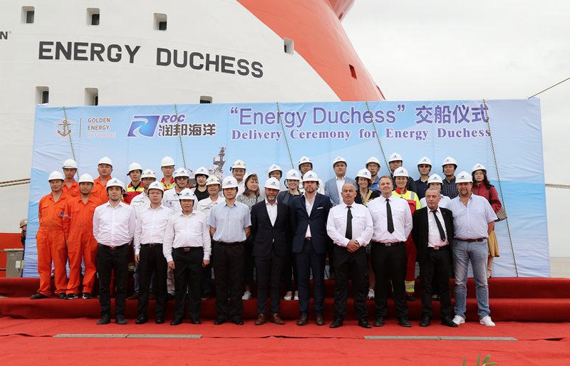 5月27日,潤邦股份子公司南通潤邦海洋工程裝備有限公司為挪威船東Golden Energy Offshore(GEO)建造的第二艘高端海工項目——平臺供應船( PSV) “ENERGY DUCHESS”號交付儀式在潤邦海洋舉行。
