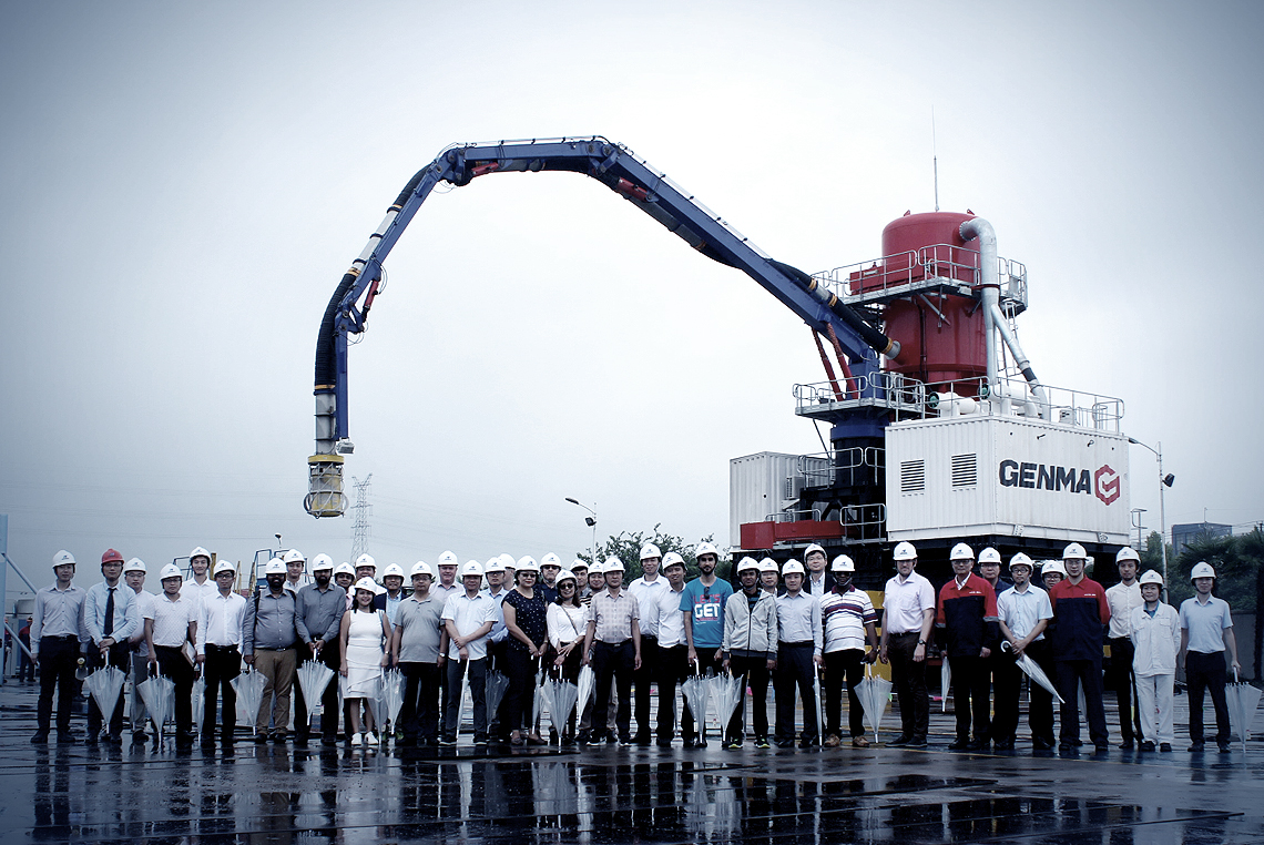 大噸位氣力式卸船機(jī)是GENMA針對(duì)水泥、礦粉等極易揚(yáng)塵的散料而打造的產(chǎn)品,峰值卸船效率達(dá)到400 t/h,其物料輸送過程處于密封狀態(tài),加上新型高效進(jìn)料器和褶皺式濾袋,完美解決了卸船過程中的粉塵污染問題,真正實(shí)現(xiàn)了環(huán)保輸送。