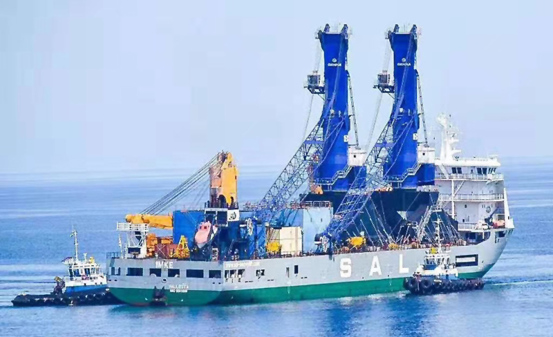 2019年8月1日晚,隨著巨型海輪汽笛聲的拉響,江蘇潤邦重工股份有限公司旗下子公司南通潤邦重機有限公司的2臺GENMA移動式港口起重機(GHC150)跨越太平洋的海上絲綢之路,順利抵達薩爾瓦多阿卡胡特拉港(Puerto de Acajutla)。GENMA移動式港口起重機首次亮相中美洲,成為了中美洲五國港口有史以來的第一套港口集裝箱自動裝卸設備。新的GENMA移動式港口起重機吊裝速度快,將大大提高阿卡胡特拉港的吞吐能力,為薩爾瓦多國內外貿易業務提供有力支撐,助力薩爾瓦多經濟發展。