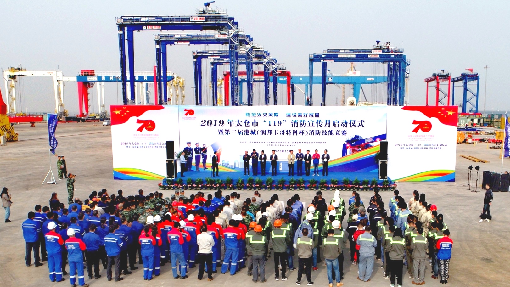 近日,由太倉市消防安全委員會、太倉港經(jīng)濟(jì)技術(shù)開發(fā)區(qū)總工會、太倉港經(jīng)濟(jì)技術(shù)開發(fā)區(qū)安全生產(chǎn)與環(huán)境保護(hù)局主辦,潤邦卡哥特科協(xié)辦的“2019 年太倉市‘119’消防宣傳月啟動儀式暨第三屆港城(潤邦卡哥特科杯)消防技能競賽”活動在潤邦卡哥特科舉辦,太倉市、太倉港經(jīng)濟(jì)技術(shù)開發(fā)區(qū)管委會各部門領(lǐng)導(dǎo)及港區(qū)部分企業(yè)出席了此次活動。