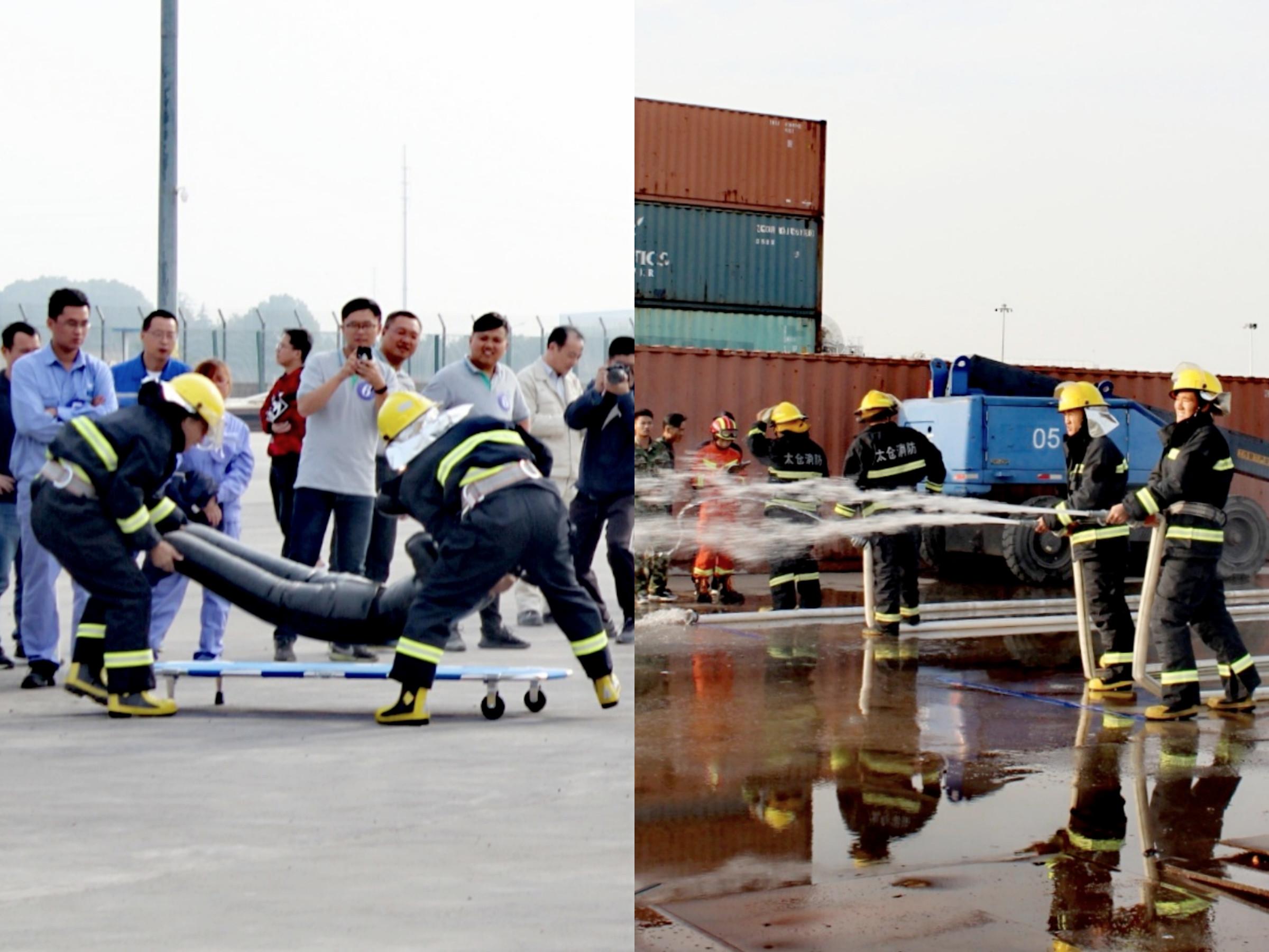 在消防宣傳月啟動儀式上太倉市政府副市長馮晉發(fā)表致辭、太倉港區(qū)管委會副主任陸湘元進(jìn)行了講話,市領(lǐng)導(dǎo)、港區(qū)領(lǐng)導(dǎo)、部分企業(yè)家代表上臺舉行了啟動儀式。之后,來自港區(qū)的18支隊(duì)伍分別進(jìn)行了男女混合接力干粉滅火器滅油盆火、救助傷員、原地著裝消防手抬泵百米出水操三項(xiàng)技能比拼。最后玖龍紙業(yè)(太倉)有限公司獲得一等獎,太倉陽鴻石化有限公司及太倉中集集裝箱制造有限公司獲得二等獎,太倉新太酒精有限公司、太倉萬方國際碼頭有限公司、江蘇長江石油化工有限公司獲得三等獎,潤邦卡哥特科工業(yè)有限公司獲優(yōu)秀組織獎。