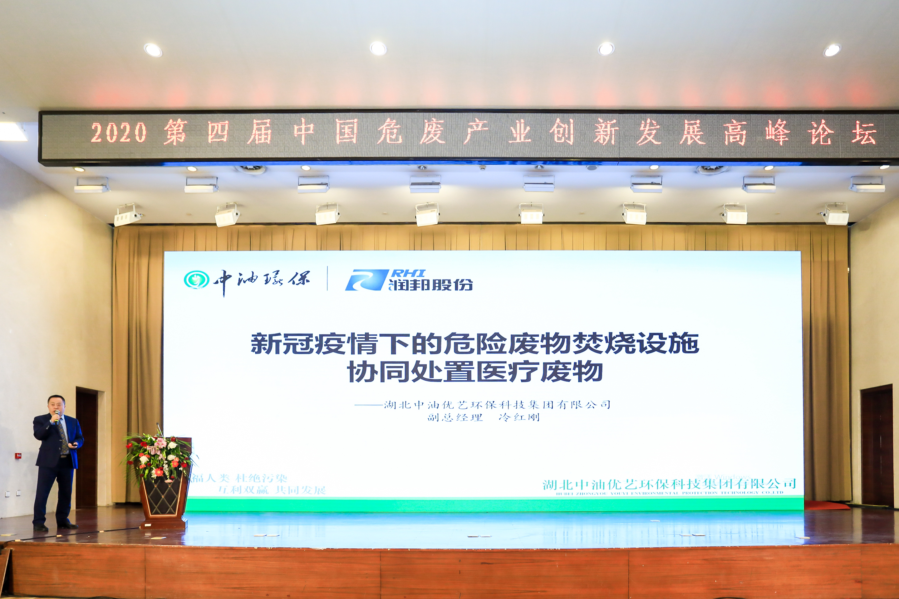 在論壇中,潤邦股份旗下中油環保副總經理冷紅剛結合中油環保在抗擊新冠肺炎病毒疫情期間所取得的經驗和成績,對危廢焚燒設施應急處置醫療廢物的相關工藝技術和運營經驗進行了詳細介紹,分享了公司獨立摸索出的一套安全環保的醫療廢物應急處置方案。