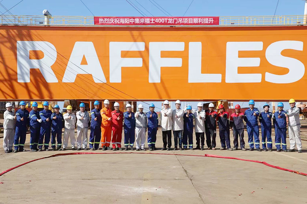 近日,由潤邦重機為海陽中集來福士海洋工程有限公司傾力打造的一臺GENMA400噸造船門式起重機(簡稱:門式起重機)順利交付。該產品主要用于船舶制造過程中的吊裝作業,具備良好的升降、定位、調運功能。