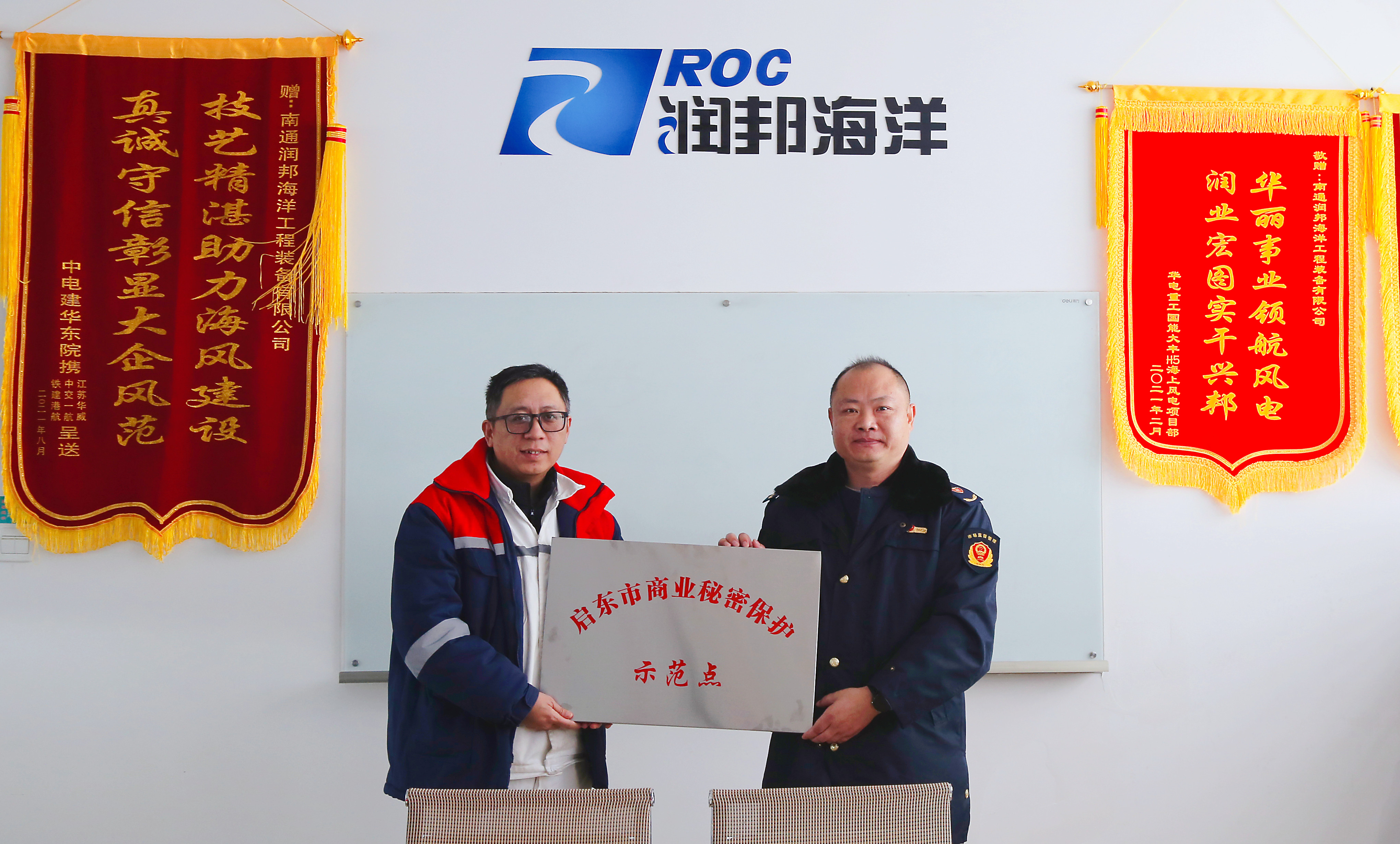 近日,南通潤邦海洋工程裝備有限公司通過考核驗收,正式掛牌成為市級商業秘密保護示范點。啟東市市場監督管理局寅陽分局局長黃飛為企業授牌,潤邦海洋相關負責人出席授牌儀式。