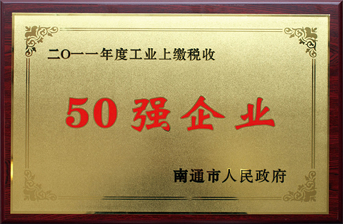 近日,公司榮膺了由南通市人民政府授予的“2011年度工業上繳稅收50強企業”稱號。同時榮膺該稱號的還有公司旗下全資子公司——南通潤邦重機有限公司。