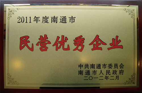 近日,公司被中共南通市委員、南通市人民政府評為“2011年度南通市民營優秀企業”。公司將繼續加快發展,做大做強,為南通地方經濟貢獻自己一份力量。