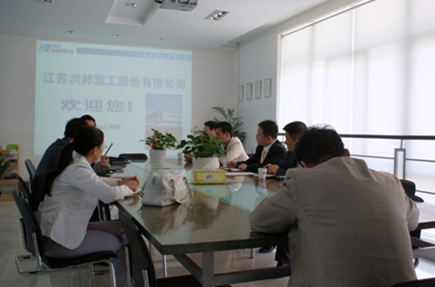 2010年4月23日上午,南通市經(jīng)濟(jì)貿(mào)易委員會(huì)趙立新副主任一行3人來(lái)公司調(diào)研,公司吳建對(duì)潤(rùn)邦股份近幾年的快速發(fā)展及所取得的令人矚目的成績(jī)表示肯定,同時(shí)指出公司前階段進(jìn)入南通市大企業(yè)辦的申請(qǐng)材料已經(jīng)得到核準(zhǔn)