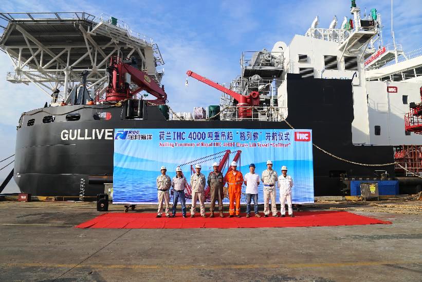子公司潤(rùn)邦海洋為荷蘭Royal IHC建造的4000噸自航重吊船順利舉行開航儀式。NORMALUX船東、Royal IHC代表及公司高層出席了開航儀式。