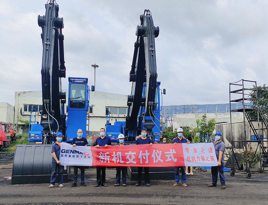潤邦重機順利交付兩臺GENMA 42噸新品抓料機