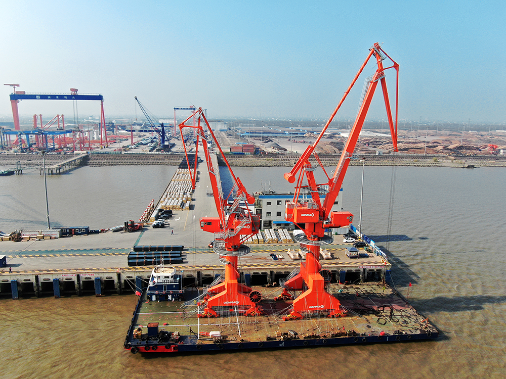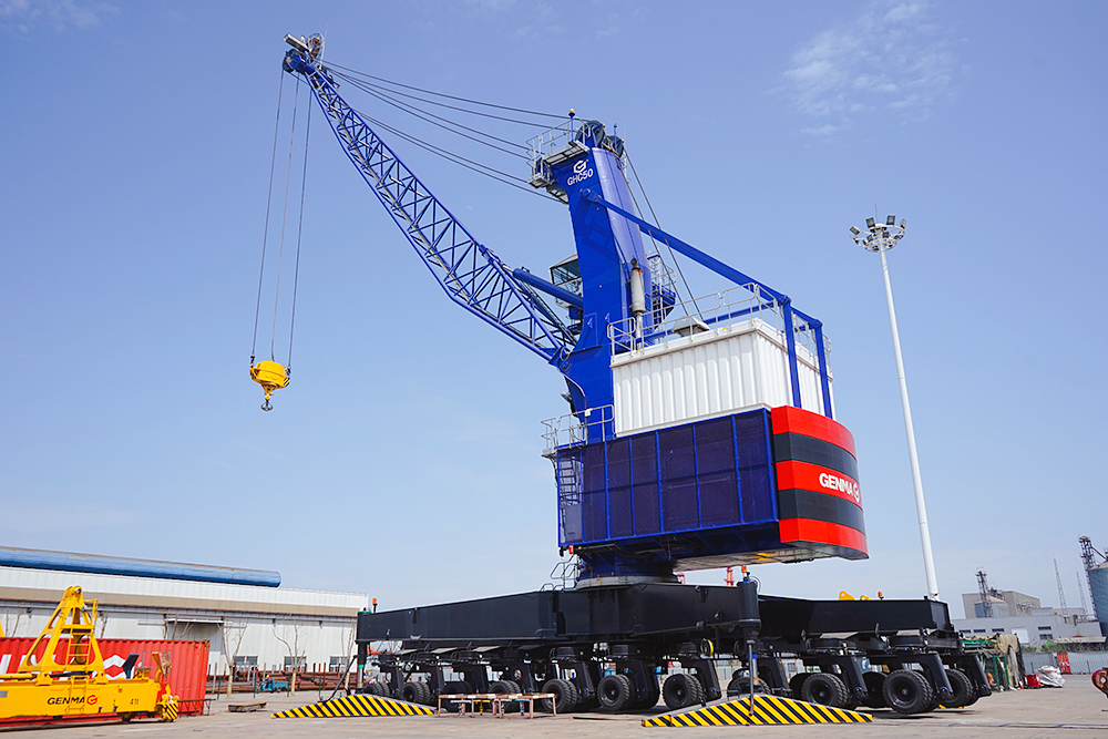 近日,潤邦重機成功中標1臺GENMA四連桿門座式起重機(簡稱:門座機)和4臺GENMA橋式抓斗卸船機(簡稱:卸船機)訂單。
