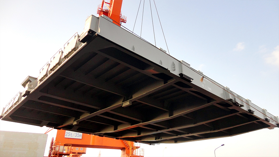 主要用于散貨船,是將艙口蓋向船兩邊移動以空出貨艙。側滑式艙口蓋可分為單蓋式艙口蓋和雙蓋式艙口蓋。